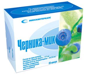 В аптеках республики можно приобрести «Чернику-МИК» - лекарственное средство на основе экстракта черники производства фармацевтического предприятия «Минскинтеркапс». Одна капсула «Черники-МИК» содержит 177 мг стандартизованного экстракта черники (антоцианидинов – 44,25 мг), что приблизительно соответствует 1,5 кг свежей черники. Нейтрализуя свободные радикалы и предотвращая окисление тканей сетчатки и хрусталика глаза, антоцианидины препатата, прерывают связи в развитии многих заболеваний органа зрения. Кроме того, антоцианидины усиливают остроту зрения при низкой освещенности; восстанавливают механизмы защиты сетчатки глаза, улучшают обмен веществ и укрепляют ткани сетчатки, подавляют патологические механизмы образования катаракты.